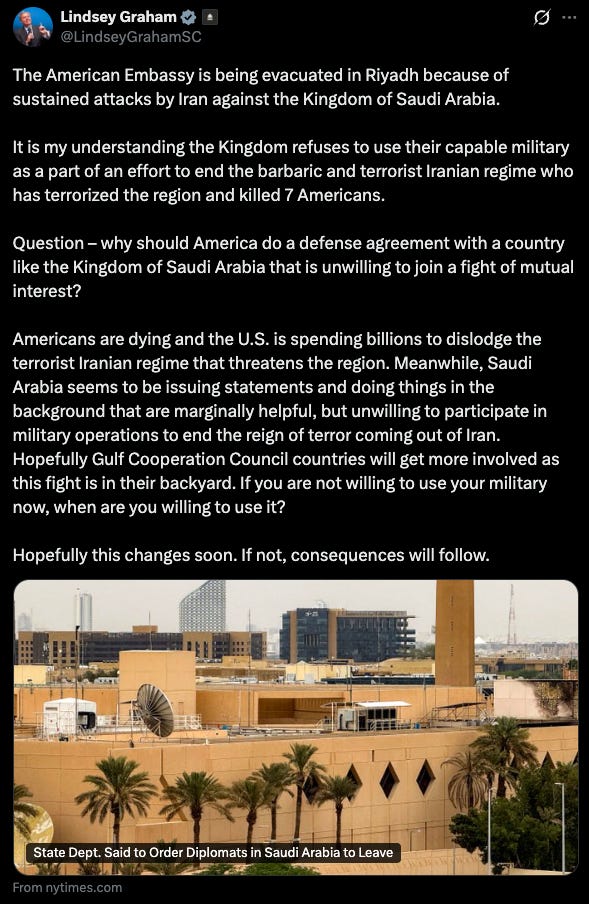 كنتُ أتصفّح تويتر ليلة أمس حين وقعت عيني على منشور ليندسي غراهام.